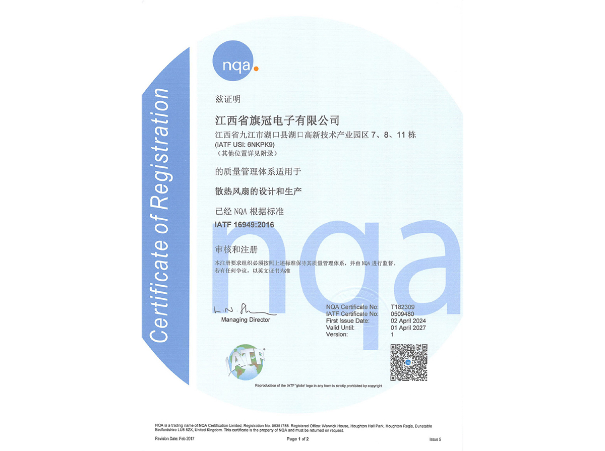 江西旗冠IATF16949证书